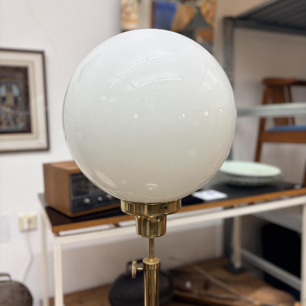 Tolle Stehleuchte in Art Deco-Stil, mit Telskopfunktion, höhenverstellbar. Messing mit Opal-glas-Kugel, sehr schöner Zustand.