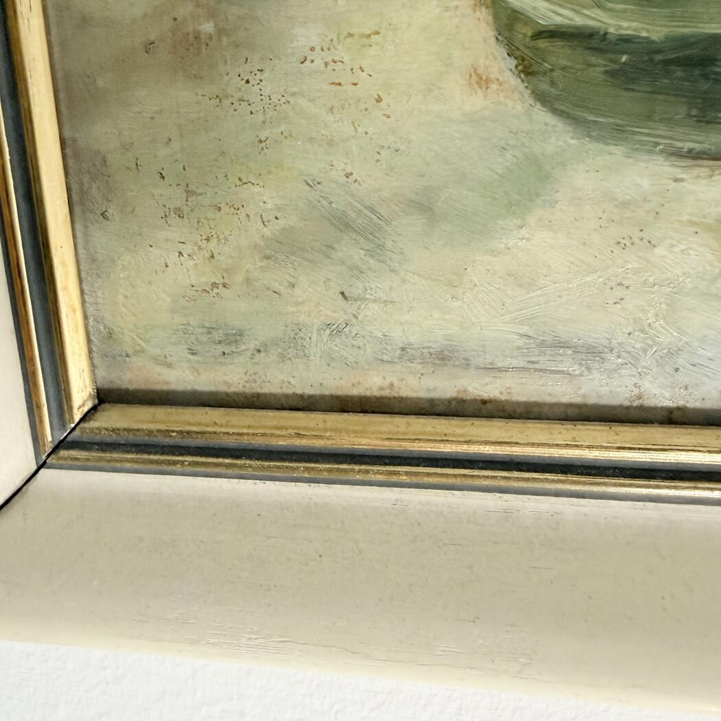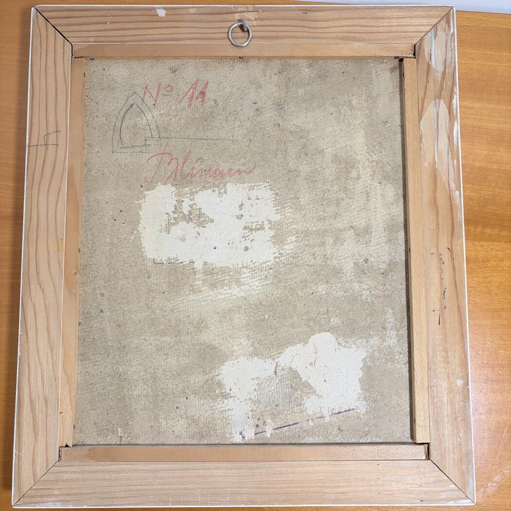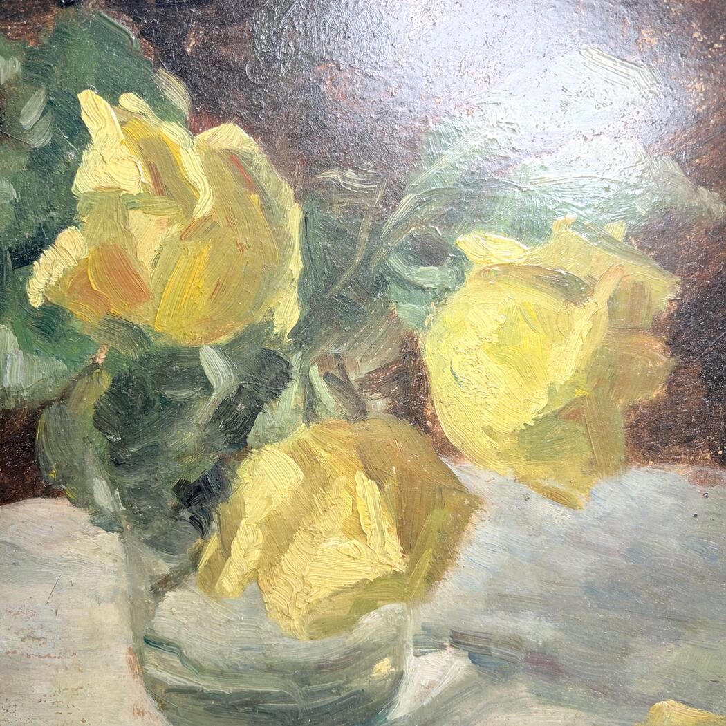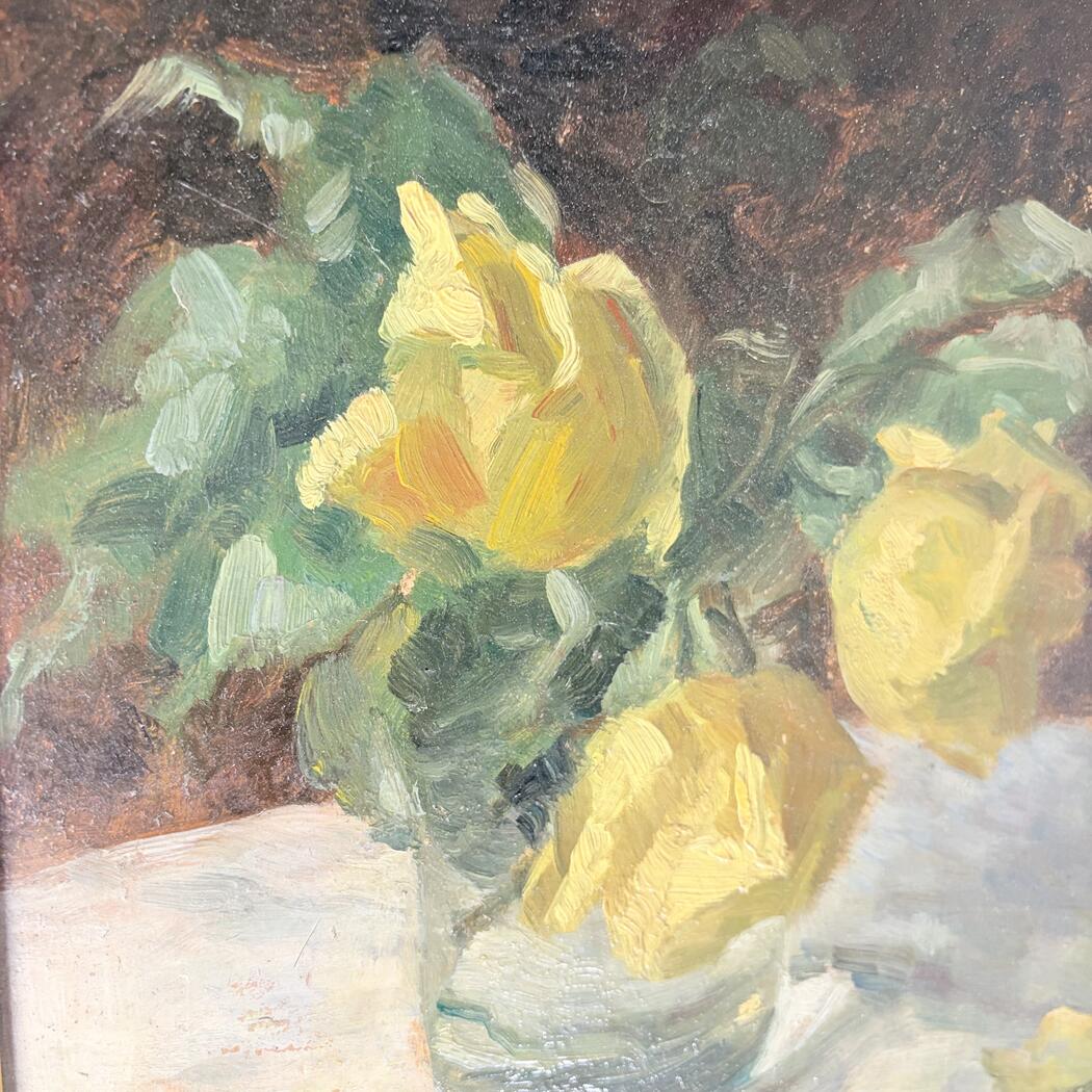 Kleines Gemälde eines Blumenstraußes. Öl auf Karton. Gerahmt. Signaturnicht lesbar.