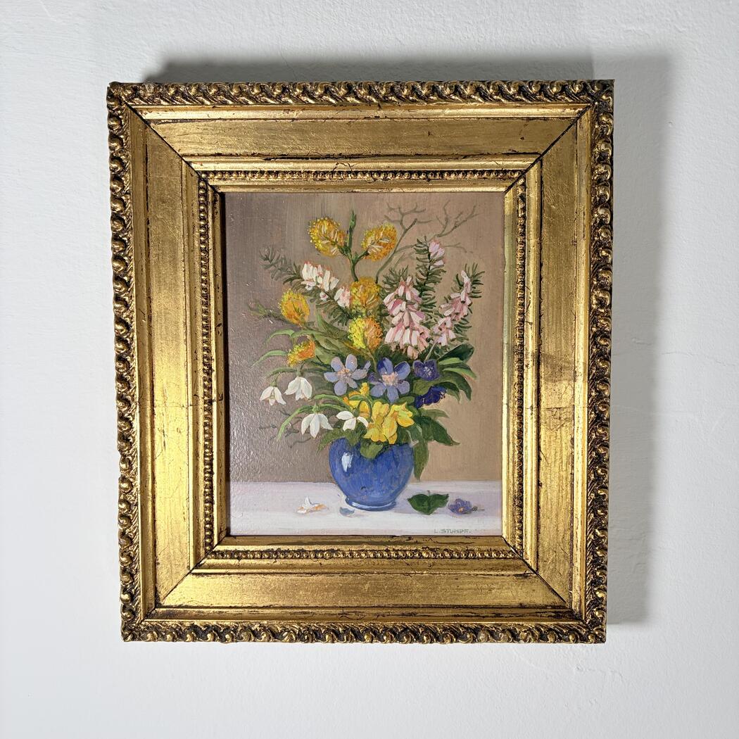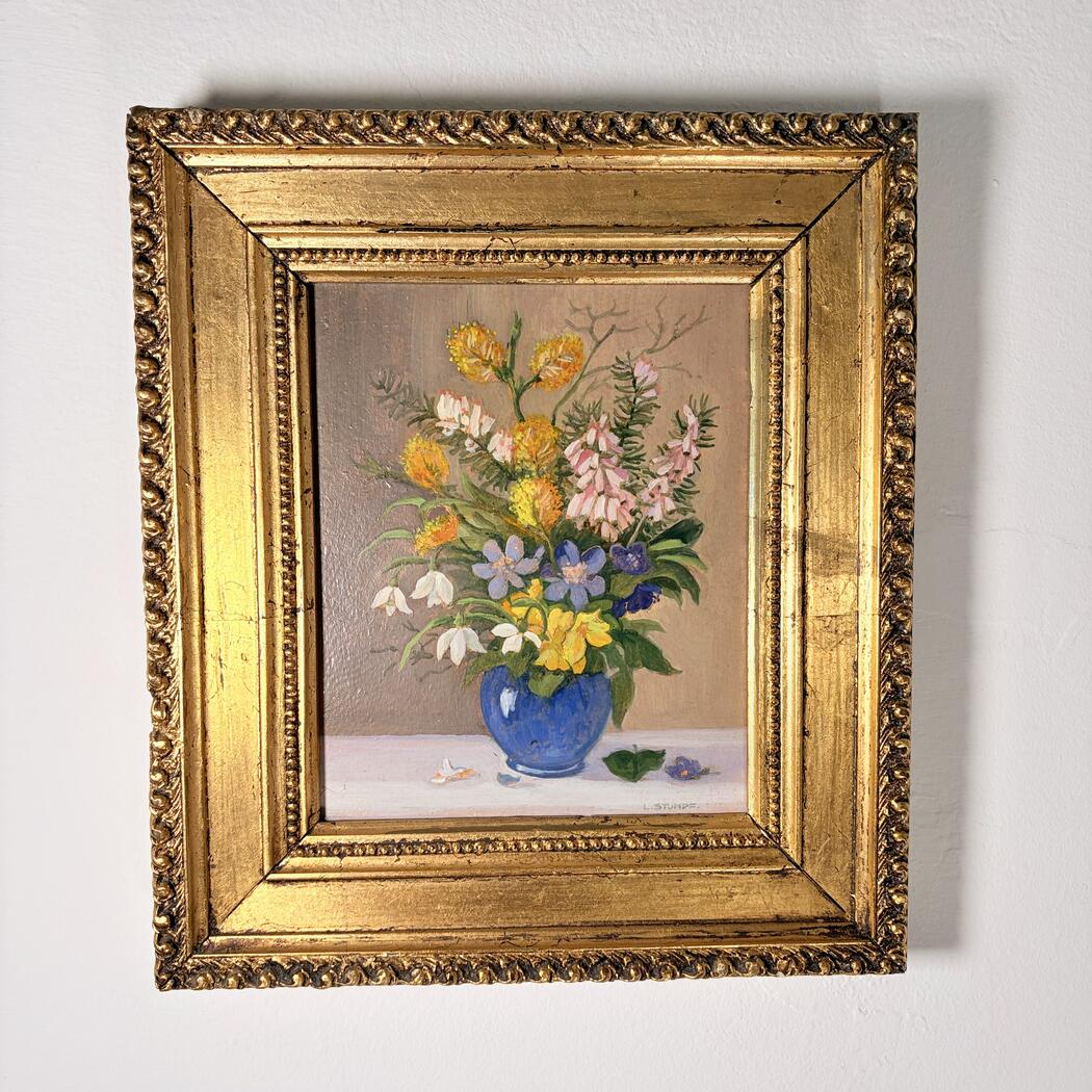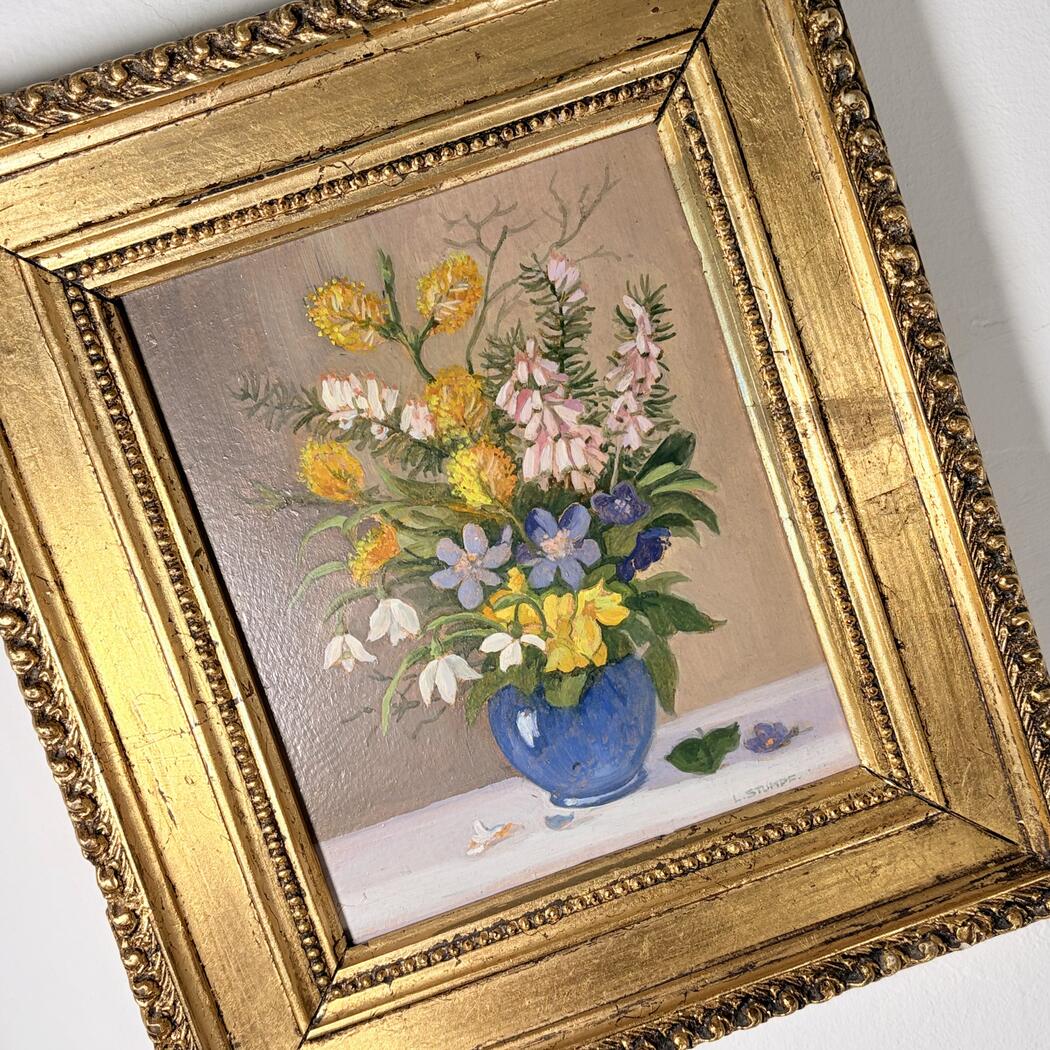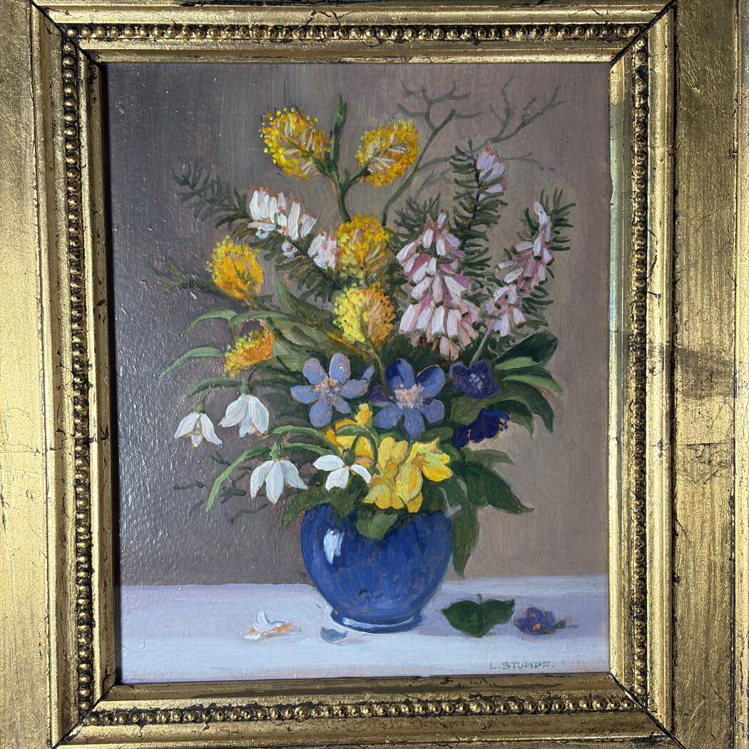 Kleines (24x28cm) Gemälde, Öl auf Karton, vergoldete Rahmung, signiert "L. Stumpf". Sehr dekorativ