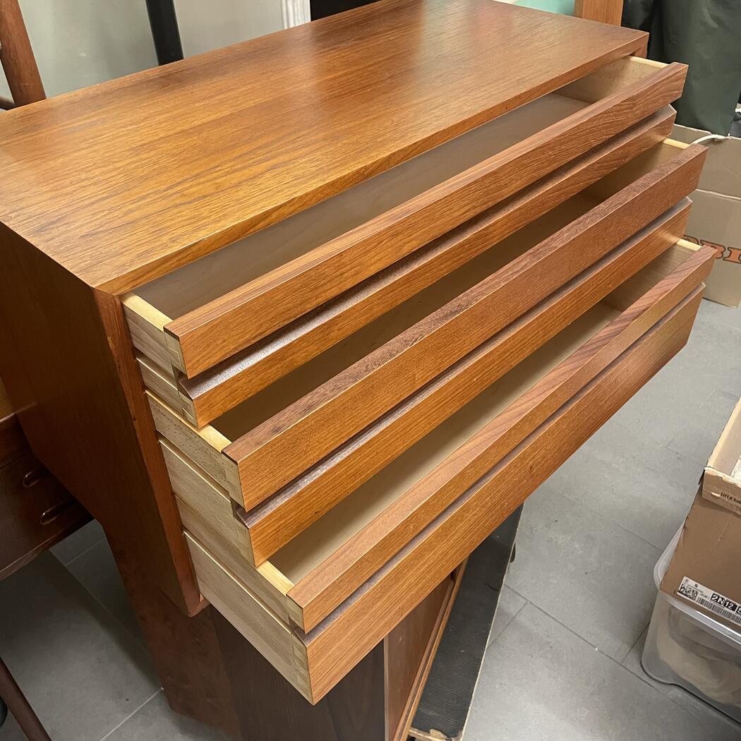 Schubladenelement mit drei Laden für Poul Cadovius Regalsystem Royal. Teakholz, sehr guter Zustand, Stäbe zur Halterung werden mitgeliefert