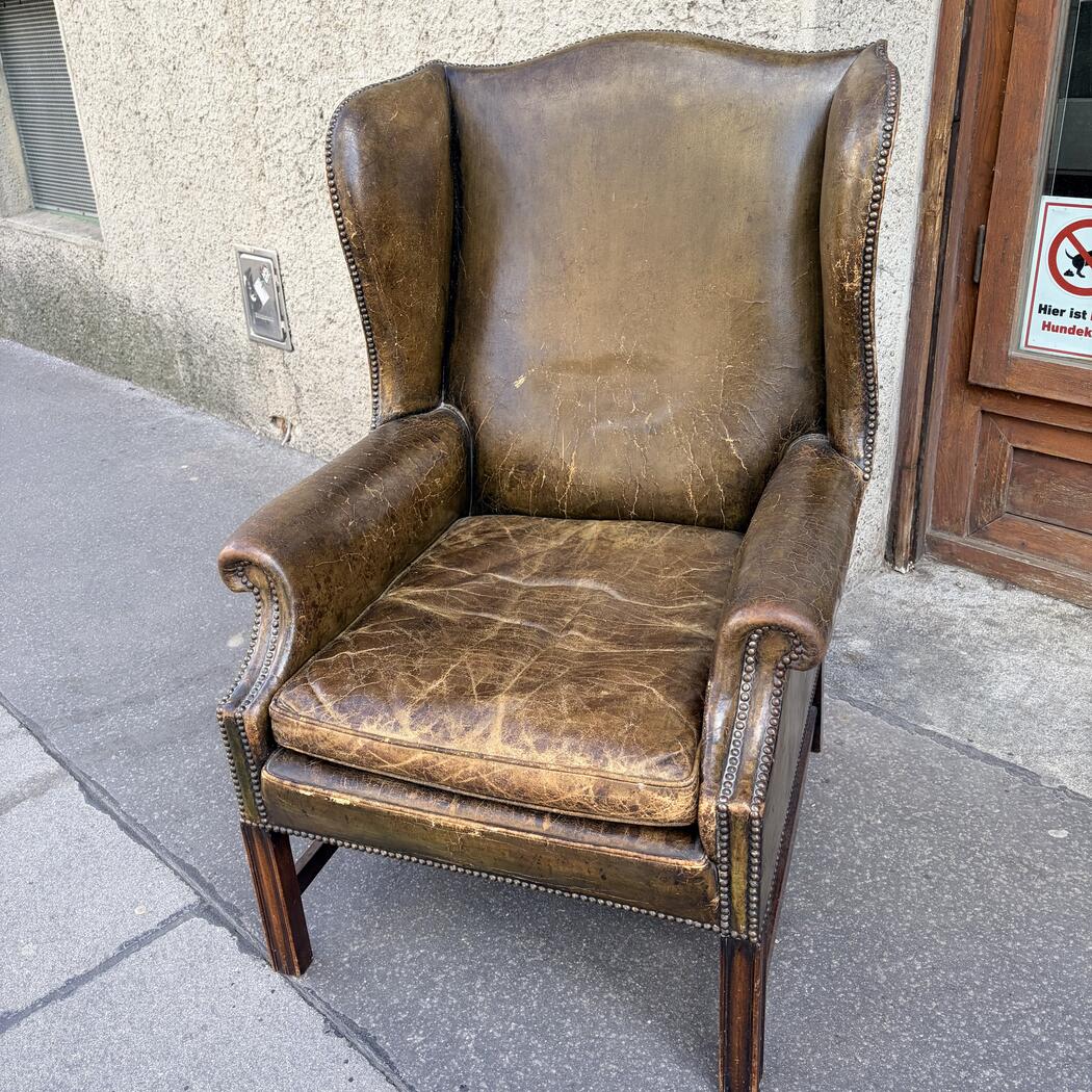 Ohrensessel Chippendale € 599,00 Dieser Artikel kann nur abgeholt werden. Lieferung auf Anfrage. In den Warenkorb Ohrensessel Chippendale, braun-grünes Leder, tolle Patina. Höhe 110 cm