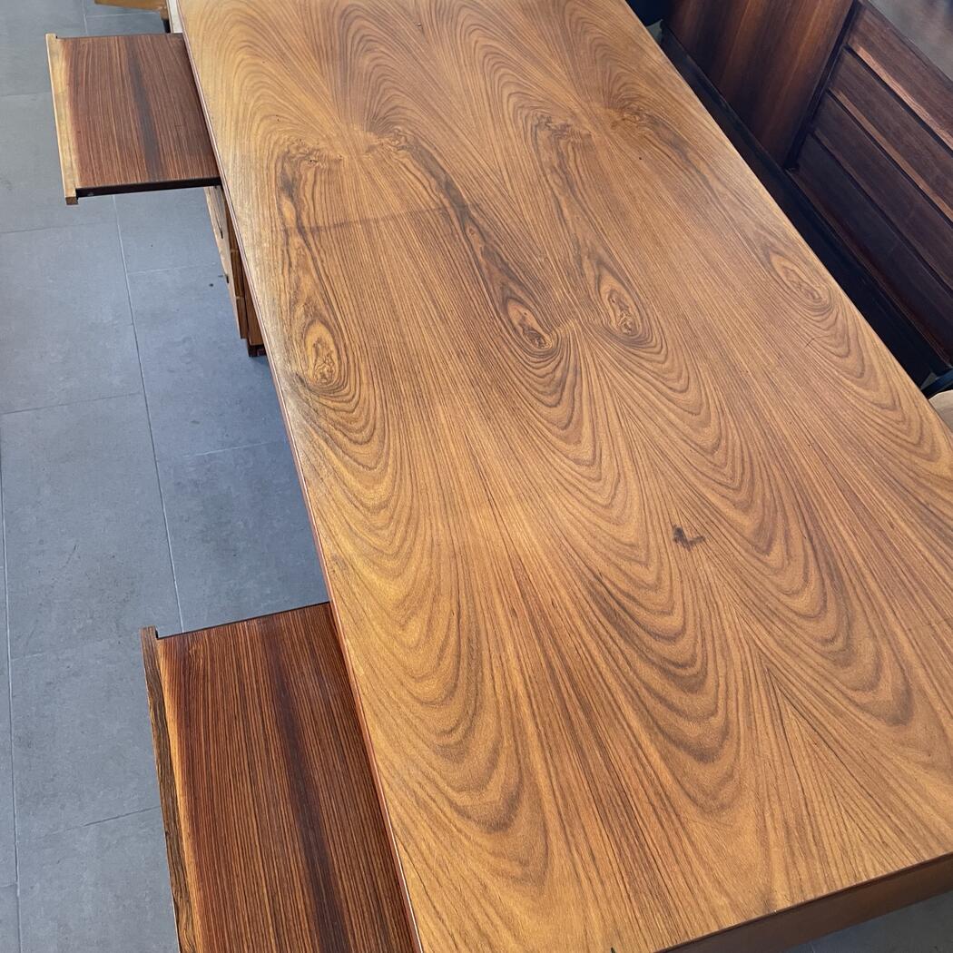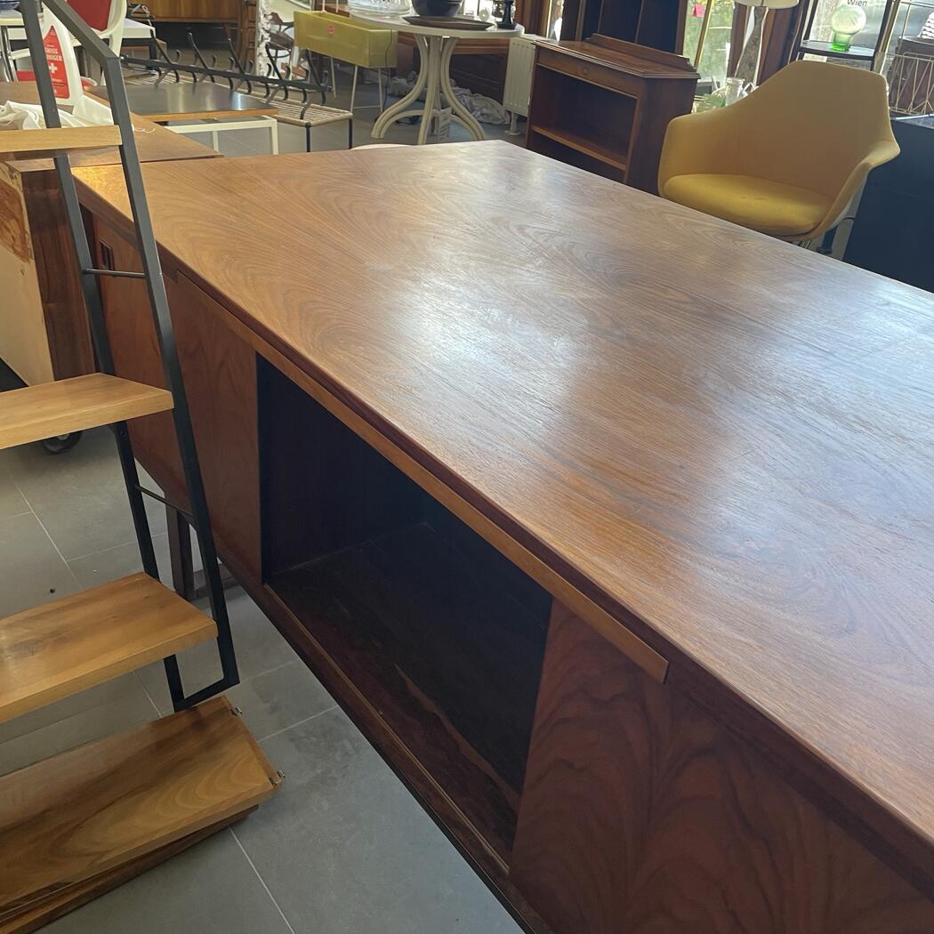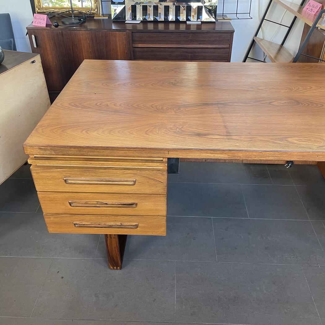 Schreibtisch von Dyrlund Dänemark, 1960er Jahre, Palisander- und Teakholz. Sehr viel Stauraum, beidseitig nutzbar: Schiebetüren, 3 Auszüge, 6 große Laden.